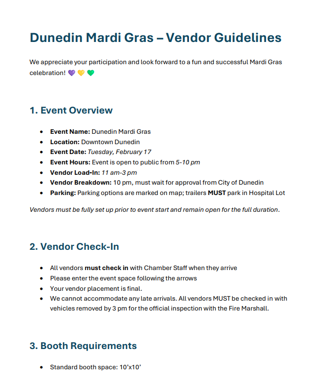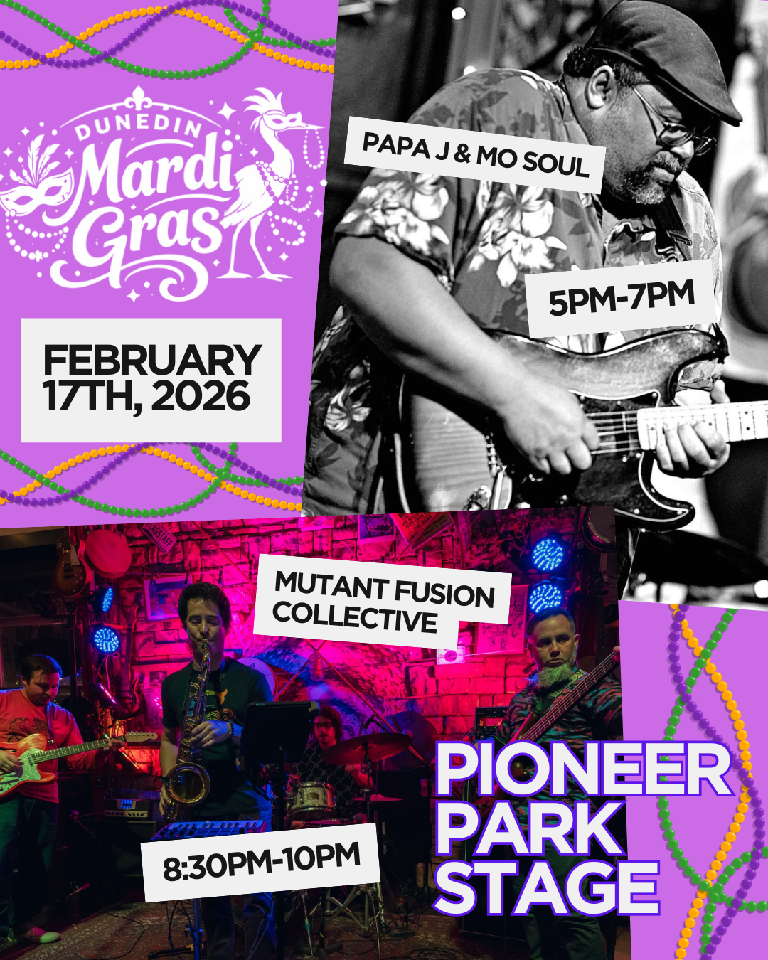 Celebrate our city’s take on Mardi Gras with music, food, parade energy, and a night that brings our whole community together. This year marks the first time the Dunedin Chamber of Commerce is leading the celebration, and we’re looking forward to creating a memorable evening for residents and visitors.
