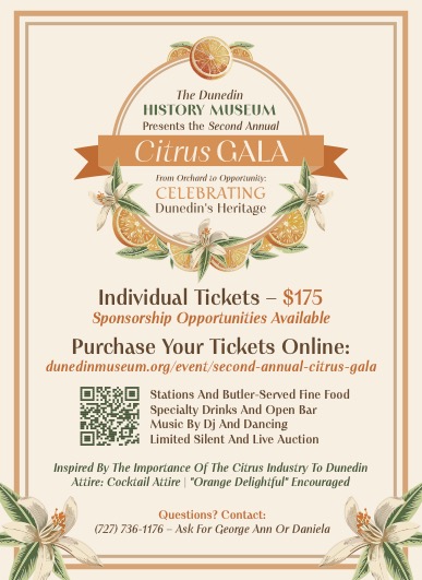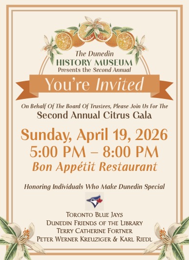 This citrus themed evening will honor this year’s Vinnie Luisi History Makers, including the Toronto Blue Jays, Dunedin Friends of the Library, Terry Catherine Fortner, and Peter Werner Kreuziger and Karl Riedl.
